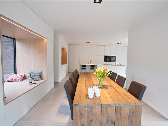 Laminaat kasten in combinatie met massief eikenhouten accenten - werkblad composiet raw conrete verzoet